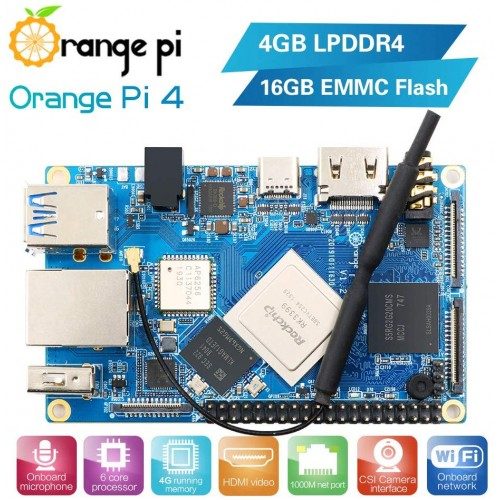 Orange Pi 4 is an open-source single-board computer. It can run Android 8.1, Ubuntu 16.04, Ubuntu 18.04, and Debian 9 images. It uses the Rockchip RK3399, and is equipped with Dual 4GB LPDDR4, with an optional 16GB eMMC flash