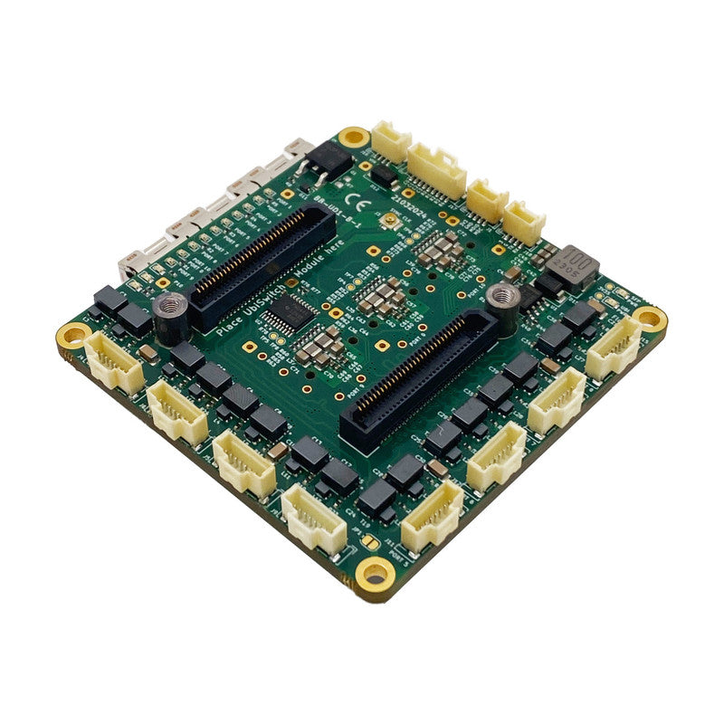 לוח הבסיס של UbiSwitch הוא לוח פיתוח ופריצת דרך קומפקטי עבור מודול BotBlox UbiSwitch המספק 8 יציאות אתרנט של 10/100/1000Mbps (ג'יגה-ביט) על גבי ראשי Molex Picoclasp ו-3 כלובי SFP של 10G. זה מאפשר בדיקה ופריסה מהירה של UbiSwitch ביישום רשת. פתרון זה, בשילוב עם מודול UbiSwitch, מספק רמת צפיפות רשת חסרת תקדים, שנועדה לאפשר קישורי נתונים בעלי תפוקה גבוהה ביישומים מוגבלים בחלל, כגון רחפנים או רובוטיקה קומפקטית. לוח הבסיס של UbiSwitch מכיל חומרים מגנטיים בכל 8 יציאות ה-Ethernet של ג'יגה-ביט לבידוד אות מלא. הלוח מופעל באמצעות מחבר צמה ל-Molex PicoClasp שיכול לקבל טווח מתח של 7 עד 60 וולט, עם הגנה מפני קוטביות הפוכה ומתח יתר, מה שהופך אותו מתאים להפעלה ישירה ממתח אפיק לא נקי. ויסות המתח המובנה בלוח הבסיס מבטיח שמודול UbiSwitch יקבל מתח חשמל נקי. מחברי Molex PicoClasp כוללים תכונת נעילה חיובית, שיפור לעומת Molex PicoBlade, מה שהופך אותם למתאימים יותר לסביבות רגישות לרעידות. קבצי העיצוב של לוח הבסיס של UbiSwitch זמינים לציבור, כך שעיצוב זה יכול לשמש כעיצוב ייחוס עבור לוחות מותאמים אישית המשתמשים במודול UbiSwitch. מה כלול בקופסה? 1 x לוח בסיס של UbiSwitch 8 x כבל Molex PicoClasp ל-RJ-45, 8 כיוונים, 400 מ"מ (UL1061, 28AWG גדילי) (BB-PCRJ1-8-0.4) (כבל נתונים) (שווה ערך ל-UTP CAT5e) 2 כבלי חשמל Molex PicoClasp למוליכים משומרים, 4 כיוונים, 400 מ"מ (UL1061, 28AWG גדילי) (BB-PCTL1-4-0.4) 1 x כבל Molex PicoClasp למוליך משומר, 9 כיוונים, 400 מ"מ (UL1061, 28 AWG גדילי) (BB-PCTL1-9-0.3) (כבל LED) צריכים מודול SFP נחושת 10G? אנחנו מוכרים גם כאלה כאן. כבלים בהתאמה אישית לוח כתיבה זה מגיע עם כבלי החשמל והנתונים הנדרשים באורך 0.4 מטר, כך שאין צורך לרכוש כבלים נוספים.