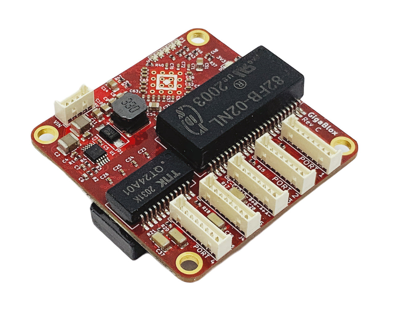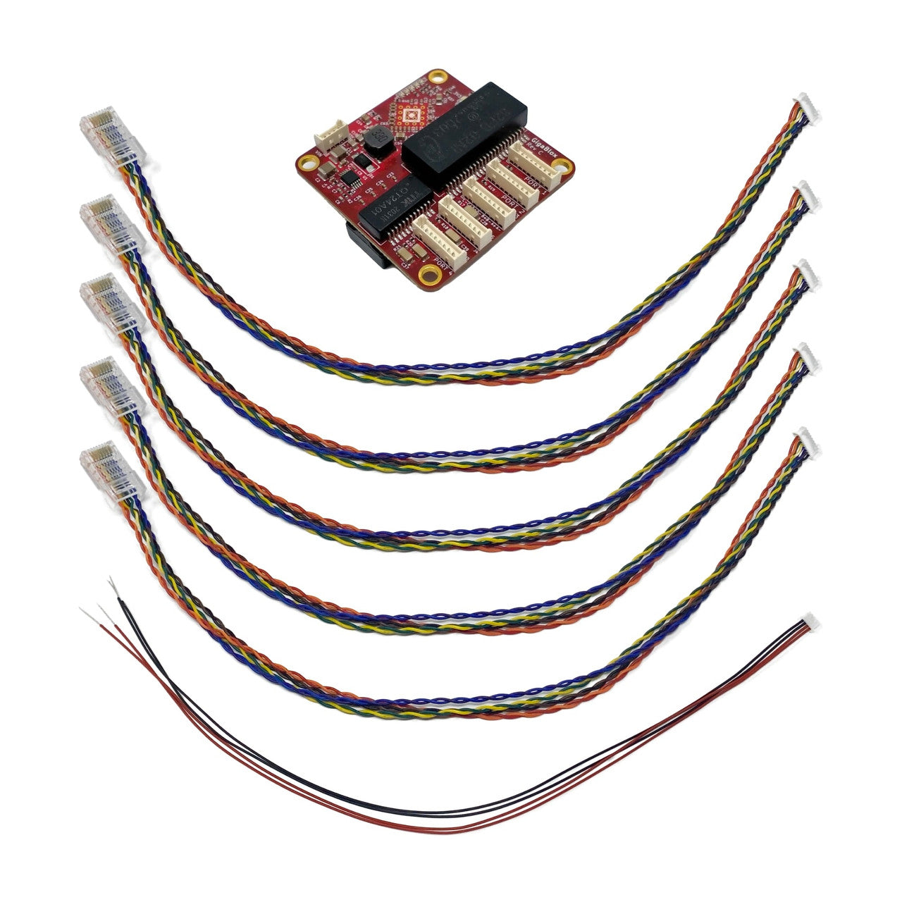 חמש יציאות ג'יגה-ביט. גודל חסר תקדים. GigaBlox הוא מתג אתרנט זעיר מסוג GigaBit עם חמישה יציאות 10/100/1000M, המיועד ליישומים בעלי נפח, משקל וחשמל מוגבלים (SWaP). פיתחנו אותו במיוחד כדי לענות על הצורך בתפוקת נתונים גבוהה בתוך נפחים פנימיים קטנים, בעיה נפוצה עבור רחפנים ורובוטים. ל-GigaBlox מידות של 45 מ"מ על 45 מ"מ, והוא פועל ממתח כניסה רחב מאוד מ-5 עד 60 וולט (סובלני עד 65 וולט). כל היציאות מבודדות גלוונית זו מזו וממתח הכניסה. חיבור ג'יגה-ביט (Plug and Play) GigaBlox הוא מתג לא מנוהל שעובד ישירות מהקופסה ללא צורך בהתקנה. כל מה שצריך לעשות הוא: הפעל ספק כוח DC של 6-60V. חברו את המכשירים שלכם באמצעות סט הכבלים המצורף. GigaBlox יבצע משא ומתן אוטומטי כדי לבחור את המהירות המהירה ביותר עבור כל מכשיר מחובר, ולאחר מכן יתחיל לעבור באופן אוטומטי. מנוע המיתוג של GigaBlox משתמש במארג שאינו חוסם, כלומר כל חמשת הפורטים מסוגלים להעביר בו זמנית 1 ג'יגה-ביט לשנייה. זה קריטי עבור יישומים עם זרמי נתונים מרובים, טיפוסי במערכות מבוססות מצלמה. בריחת לד גרסה C של GigaBlox כוללת כעת נורית LED חיצונית, המאפשרת גישה למדדי פעילות הפורטים המובנים ב-GigaBlox. מחבר Molex PicoBlade מורכב משבעה פינים, חמישה אותות LED אנודה/קתודה, 3.3V ו-GND. זה מאפשר חיבור של חמש נוריות LED חיצוניות ל-GigaBlox כדי לציין פעילות פורטים על כל הלוח. זה שימושי מאוד כאשר GigaBlox משולב במארז אך עדיין נדרש לראות את נוריות פעילות הפורטים. כבלים כלולים אנו כוללים כל מה שאתם צריכים כדי שהלוח הזה יעבוד ישר מהקופסה. כל לוח מגיע עם: 5 כבלי נתונים Molex PicoBlade ל-RJ-45, 8 כיוונים, 0.3 מטר מק"ט: BB-PBRJ1-8-0.3 1 x כבל חשמל Molex PicoBlade לכבלים משומרים, 4 כיוונים, 0.3 מטר מק"ט: BB-PBTL1-4-0.3 נקודת פינים של אתרנט להלן גרפיקה שימושית המציגה כיצד אנו עוברים מכבלי אתרנט מסוג Molex Picoblade לכבלים סטנדרטיים מסוג RJ-45. רשת אתרנט ג'יגה-ביט משתמשת בארבעה ערוצים דיפרנציאליים, בסך הכל שמונה מוליכים. פיני ג'יגהבלוקס